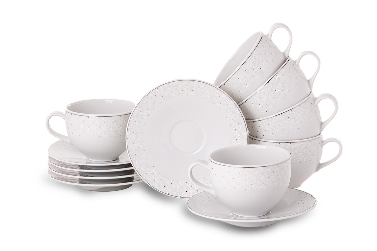 dla produktu Zestaw kawowy porcelana 12 elementów biały wzór dla 6 os.