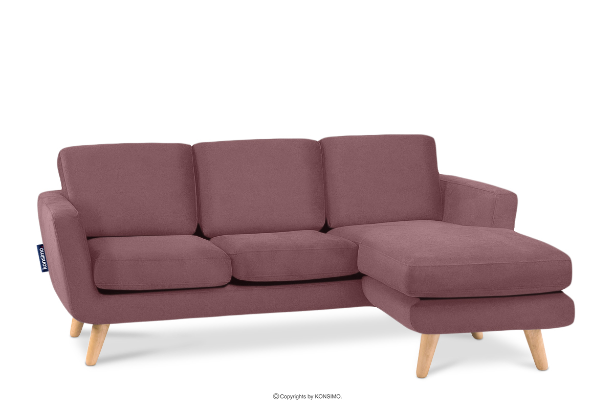 TAGIO zobacz całą kolekcję Różowy skandynawski narożnik z pufą / otomaną prawy- kolor koralowy