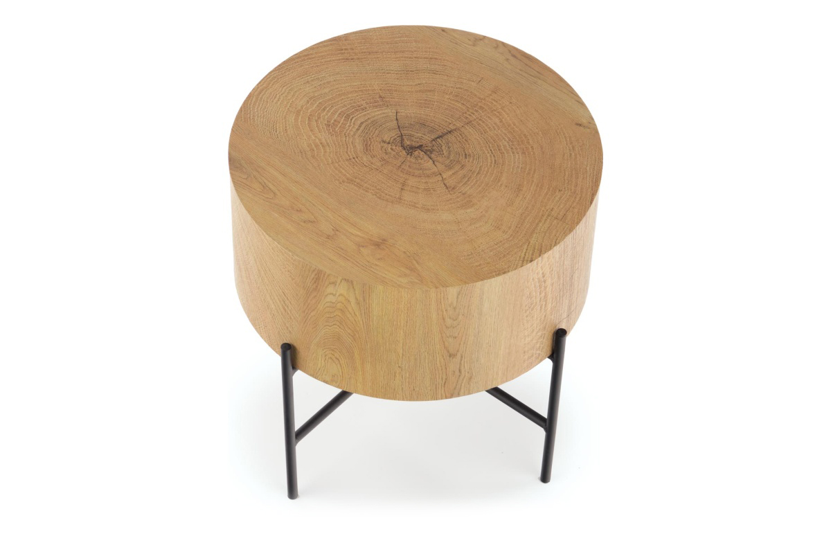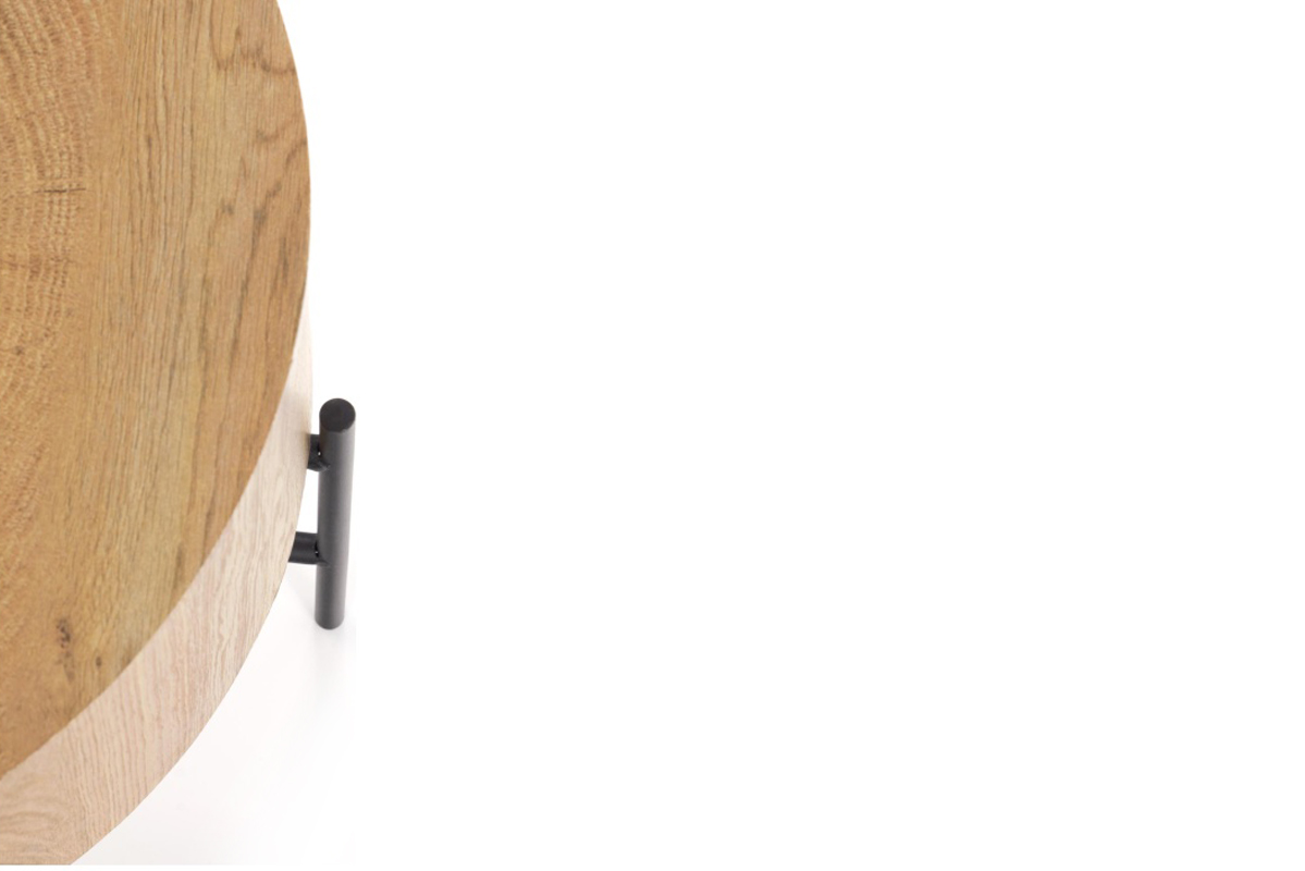BERGLI zobacz całą kolekcję Okrągły stolik kawowy na metalowym stelażu- kolor dąb naturalny/czarny