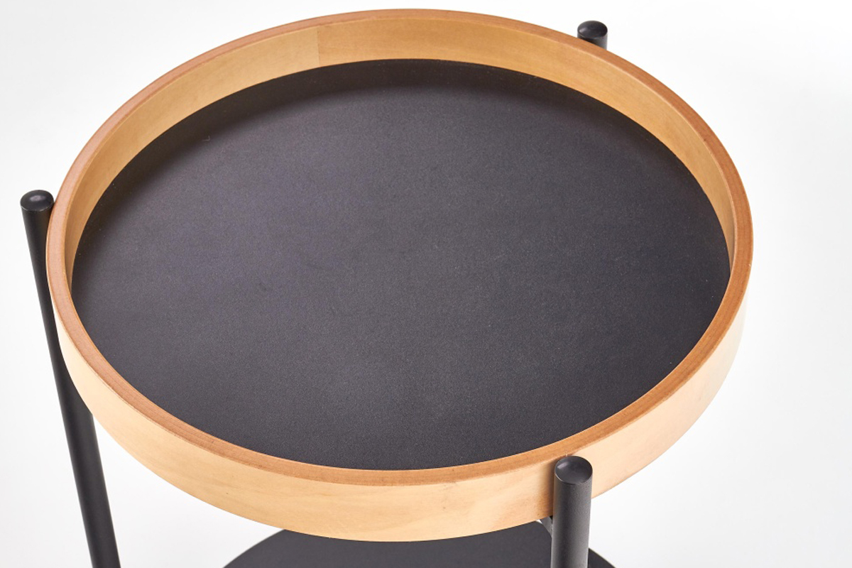 SINITES zobacz całą kolekcję Okrągły stolik pomocniczy do salonu- kolor dąb naturalny/czarny