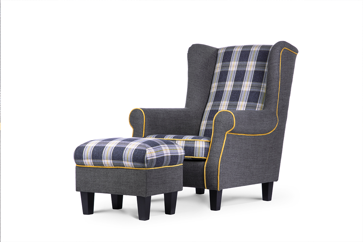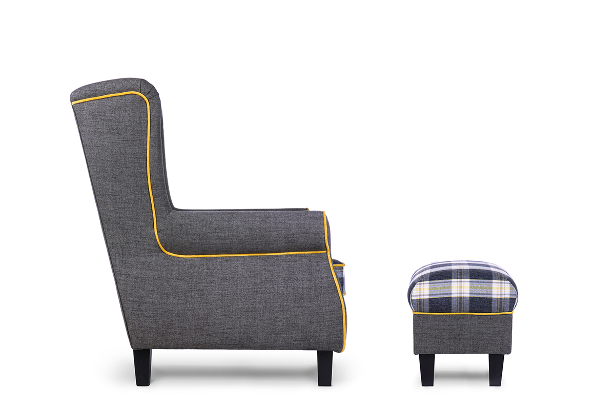 MILES zobacz całą kolekcję Podnóżek krata czarne nóżki- kolor szary/granatowy/żółty