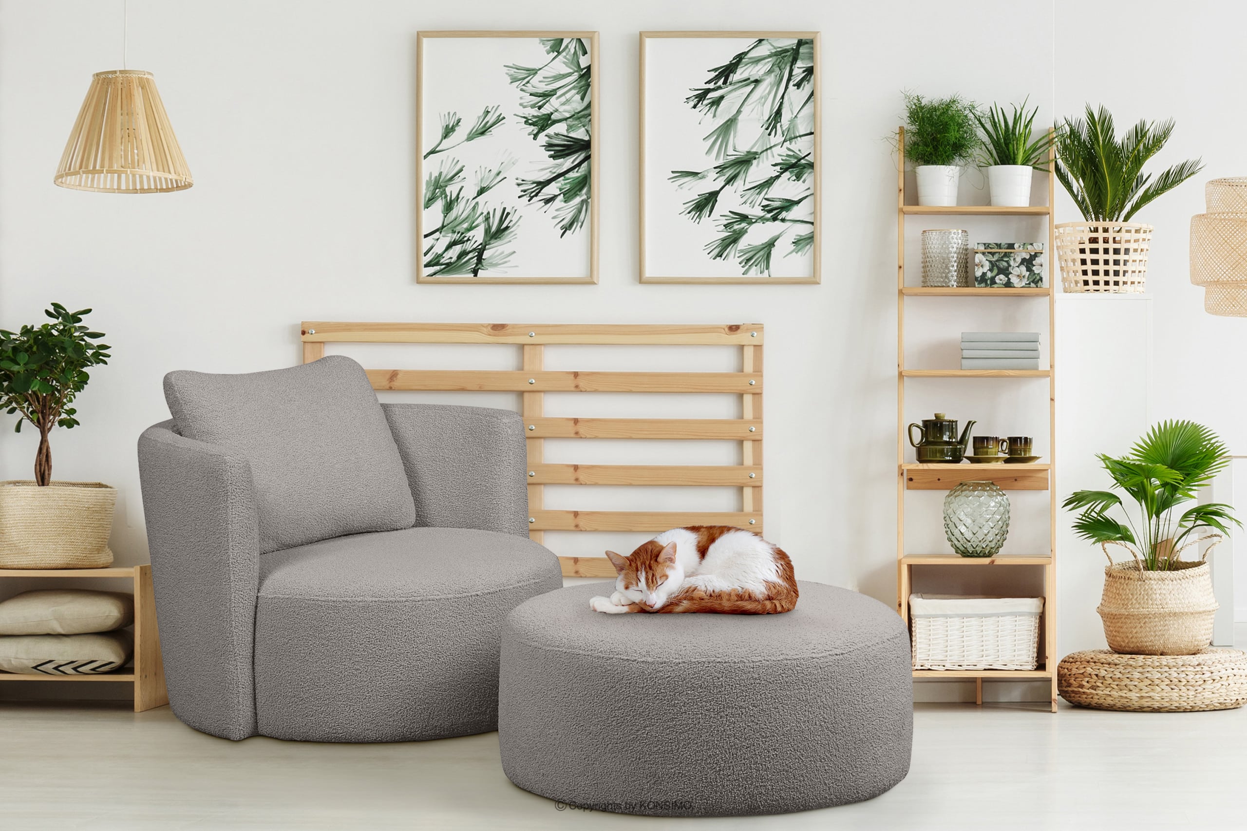 RAGGI zobacz całą kolekcję Puf boucle baranek jasnoszary- kolor jasny szary