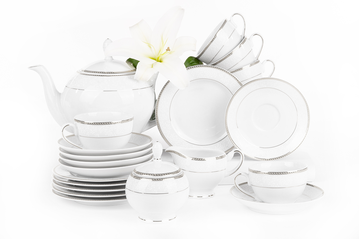 NEW HOLLIS PLATIN zobacz całą kolekcję Serwis herbaciany polska porcelana 6 os. 15 elementów biały / platynowy wzór- kolor Platin
