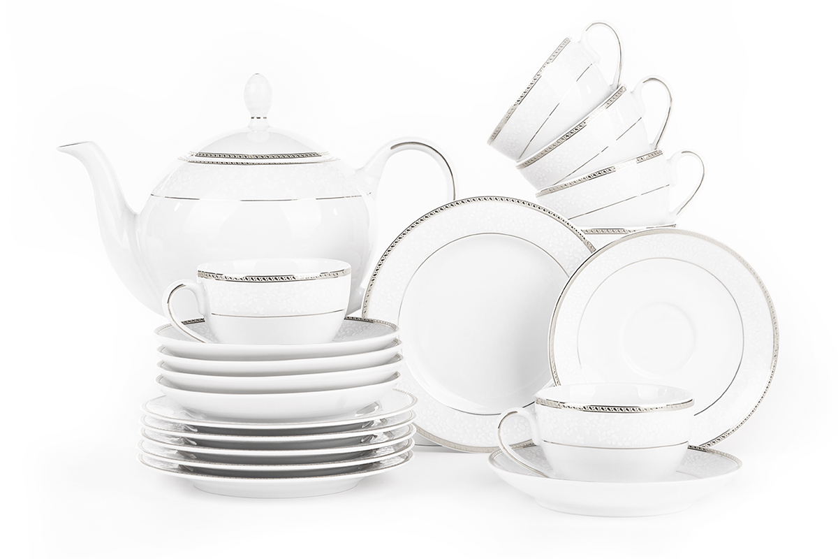 dla produktu Serwis herbaciany polska porcelana 6 os. 15 elementów biały / platynowy wzór