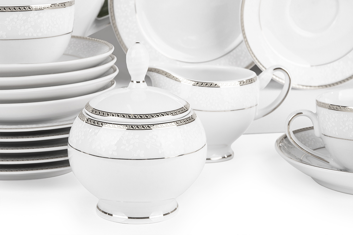 Kolekcję wykonano z pierwszorzędnej klasy porcelany, dzięki czemu przez długie lata będzie przyozdabiać stół czy wypełniać urokiem przeszklone witrynki.Nie należy używać naczyń w kuchence mikrofalowej.Serwis nadaje się do mycia w zmywarce.