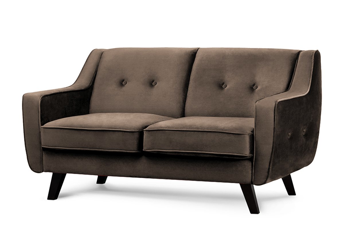 TERSO zobacz całą kolekcję Skandynawska sofa 2 osobowa welur brązowa- kolor brązowy
