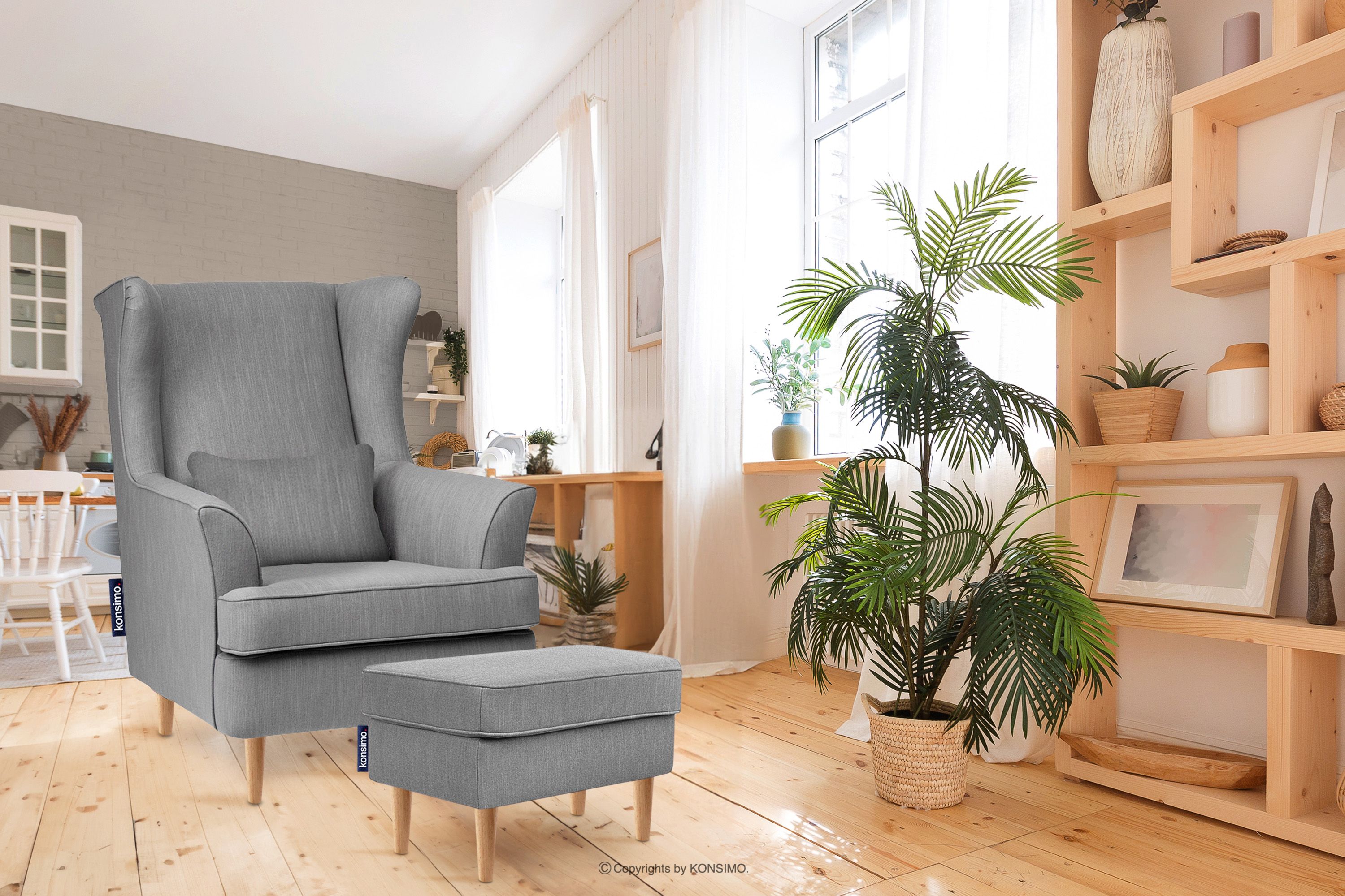 dla produktu Wygodny fotel uszak jasny szary na nóżkach