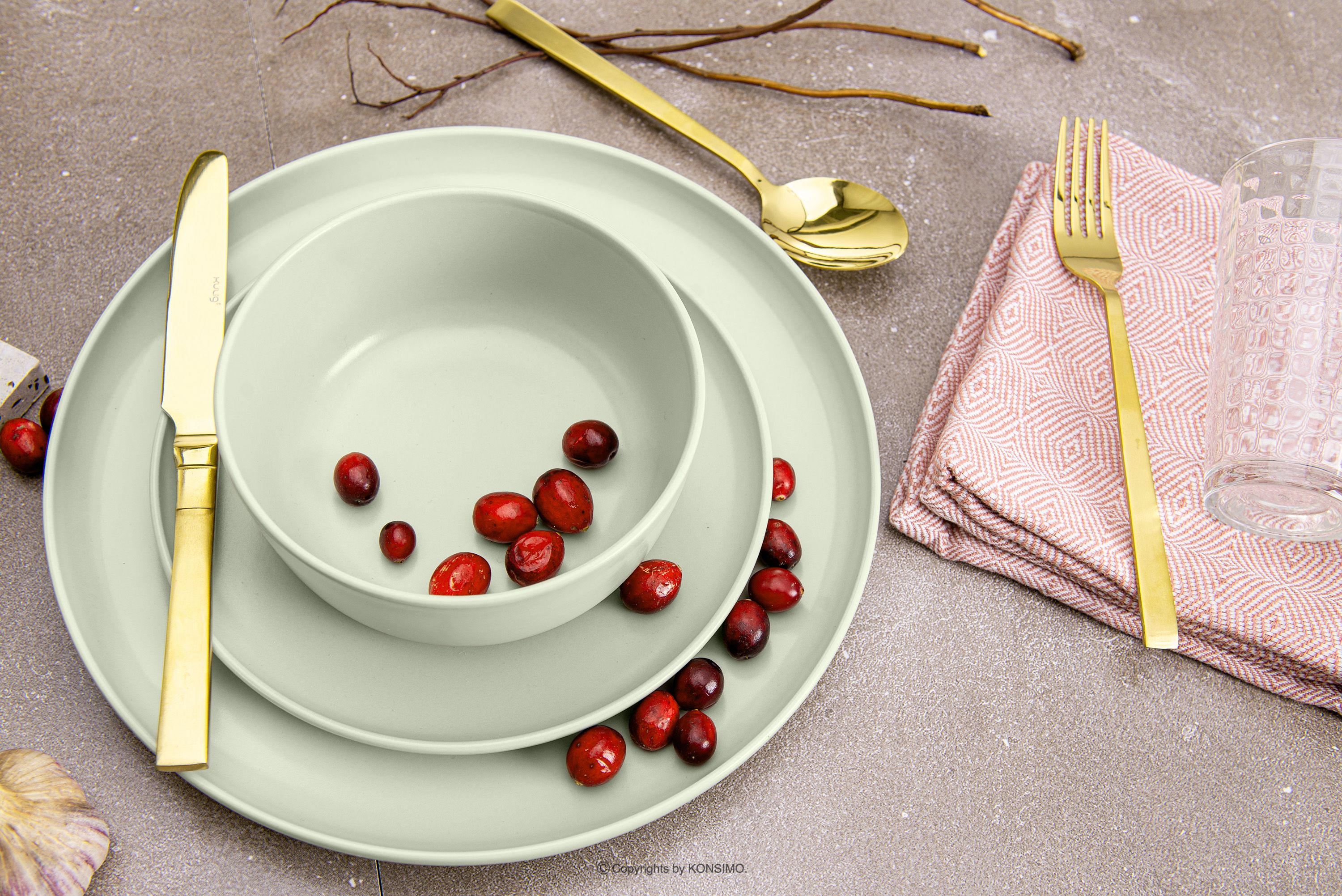 VICTO zobacz całą kolekcję Zestaw talerzy obiadowych na 6 osób beżowy/zielony/szary matowy- kolor beżowy/zielony/szary matowy